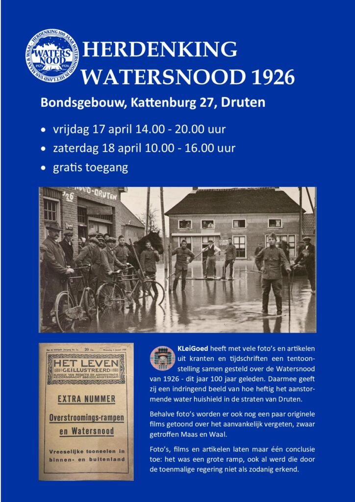 Tentoonstelling Herdenking Watersnood 1926 in Bondsgebouw 17 en 18 april